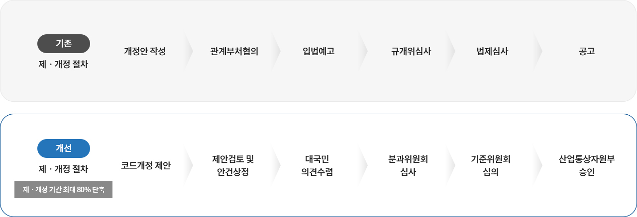 기술기준의 제ㆍ개정 추진시 기준 제ㆍ개정에 많은 시간이 소요되어 신기술의 수용지연 문제가 발생됨
