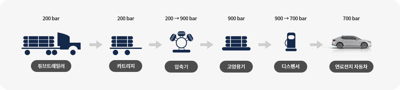 - 수소자동차에 고압의 수소(70 MPa)를 충전하는 시설로서, 수소산업 생태계의 핵심 인프라