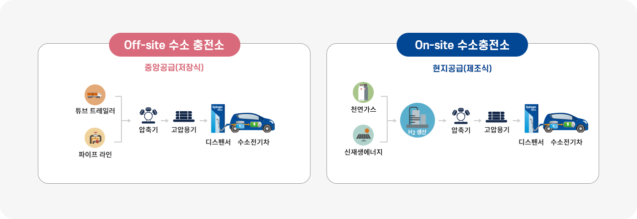 - 수소를 공급받는 방식에 따라 저장식, 제조식 으로 구분됨