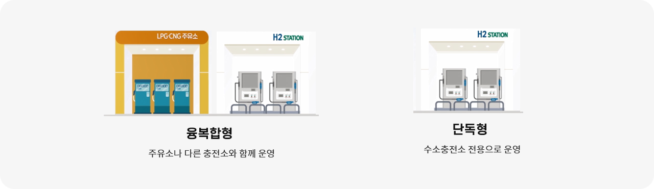 - 융·복합형은 기존시설(LPG충전소, CNG충전소, 주유취급소)에 신규시설(수소충전소)가 더해진 형태로 구성(특례기준)