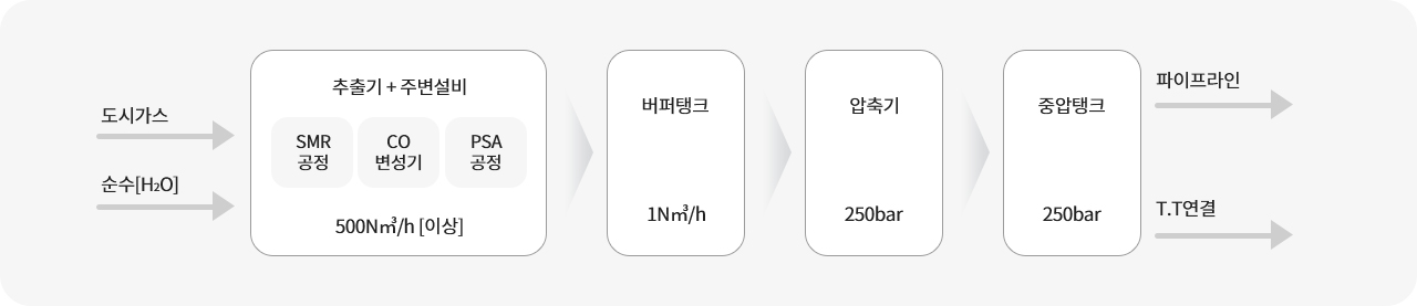 - 수증기개질, 부분연소, 직접분해 등의 방법에 의하여 도시가스 또는 액화석유가스 등으로부터 수소를 제조하는 설비